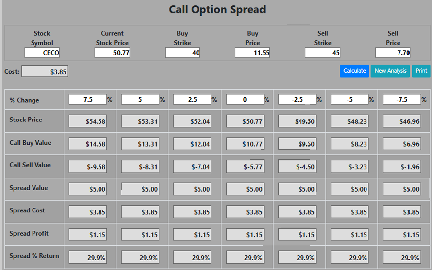 Then walking through the Optioneering™ trade strategy and profit calculations